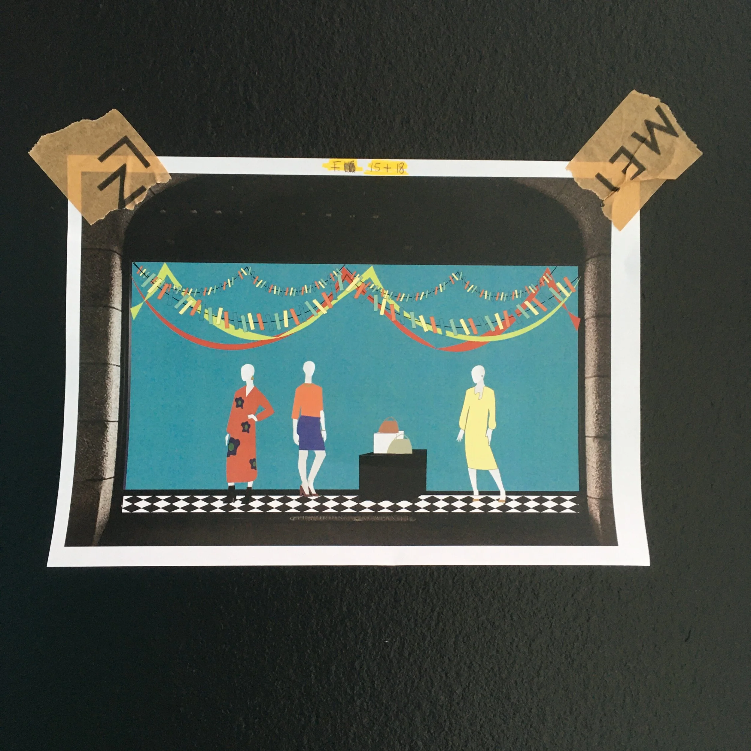 Interior from the department store with shopping ladies from 1915. Drawing from the reopening on Hamngatan, Stockholm.